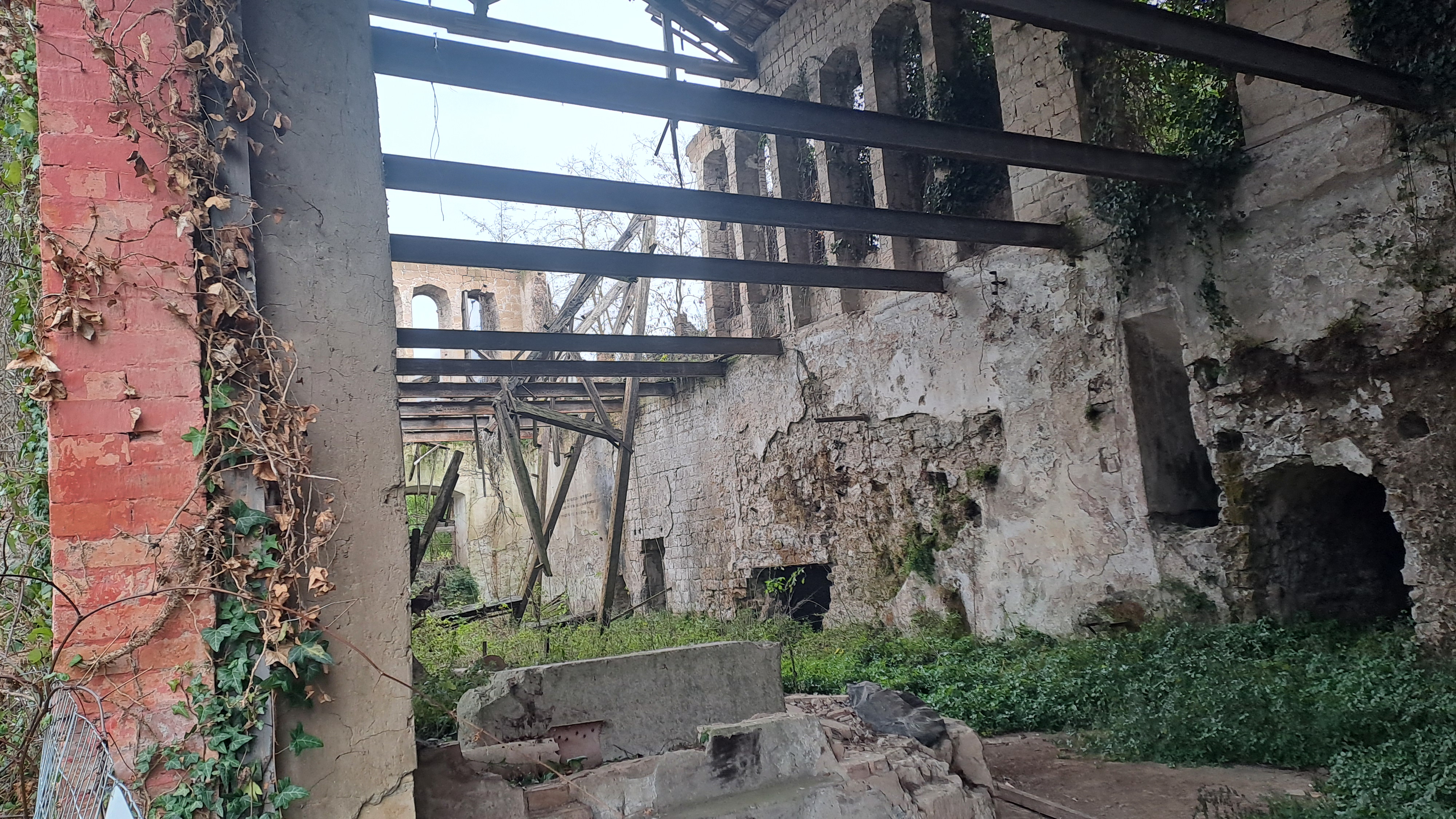 Ciò che resta della parte principale dello stabilimento. Nel 1938 viene realizzata una cartiera la quale, sfruttando le acque del fiume Sabato, produceva anche energia elettrica.