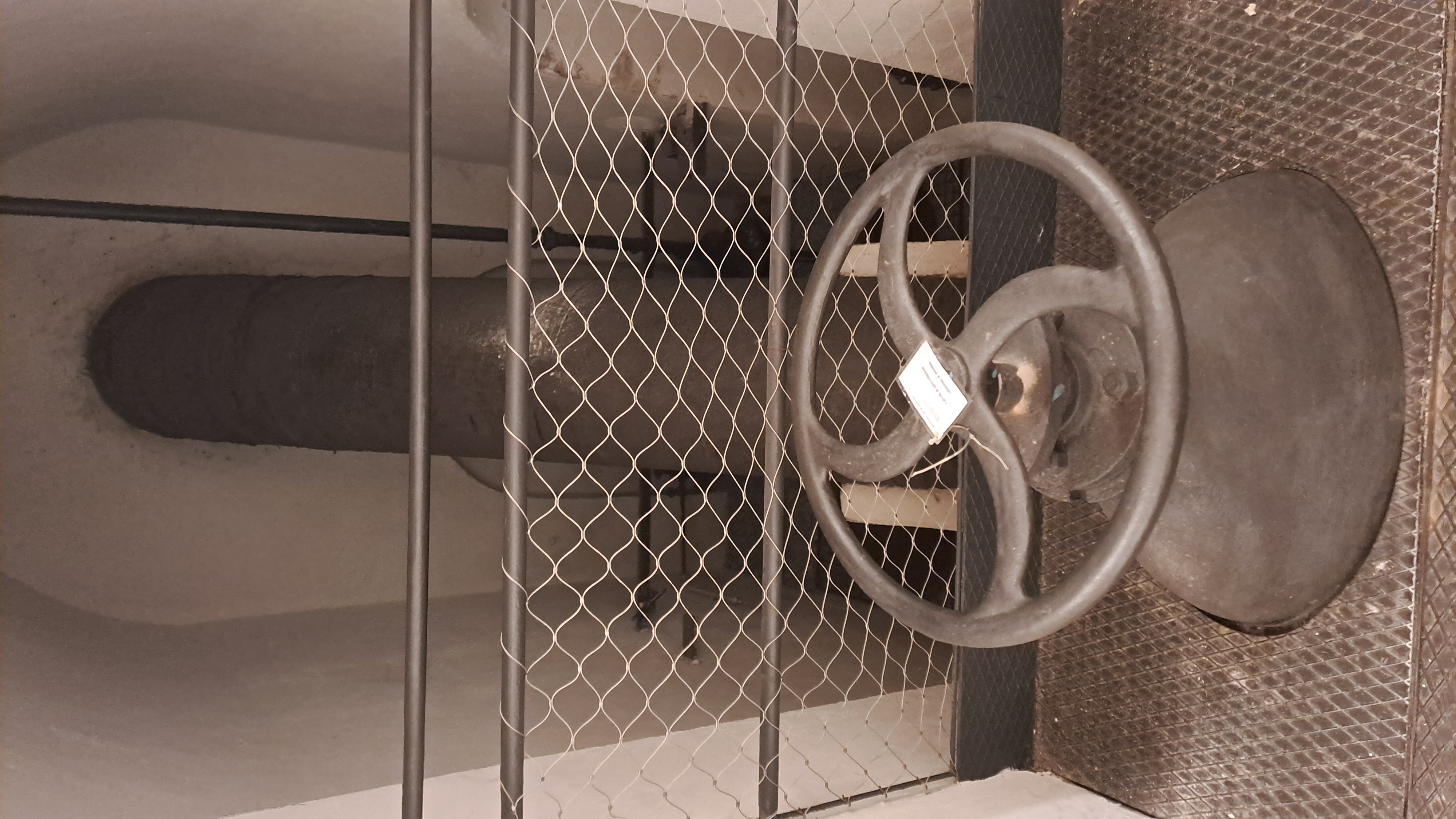 Un bel esemplare di valvola aspirante dell'epoca, ossia di una valvola che consentiva di aspirare l'acqua uscente dalla turbina a chiocciola e convogliarla in una tubazione.