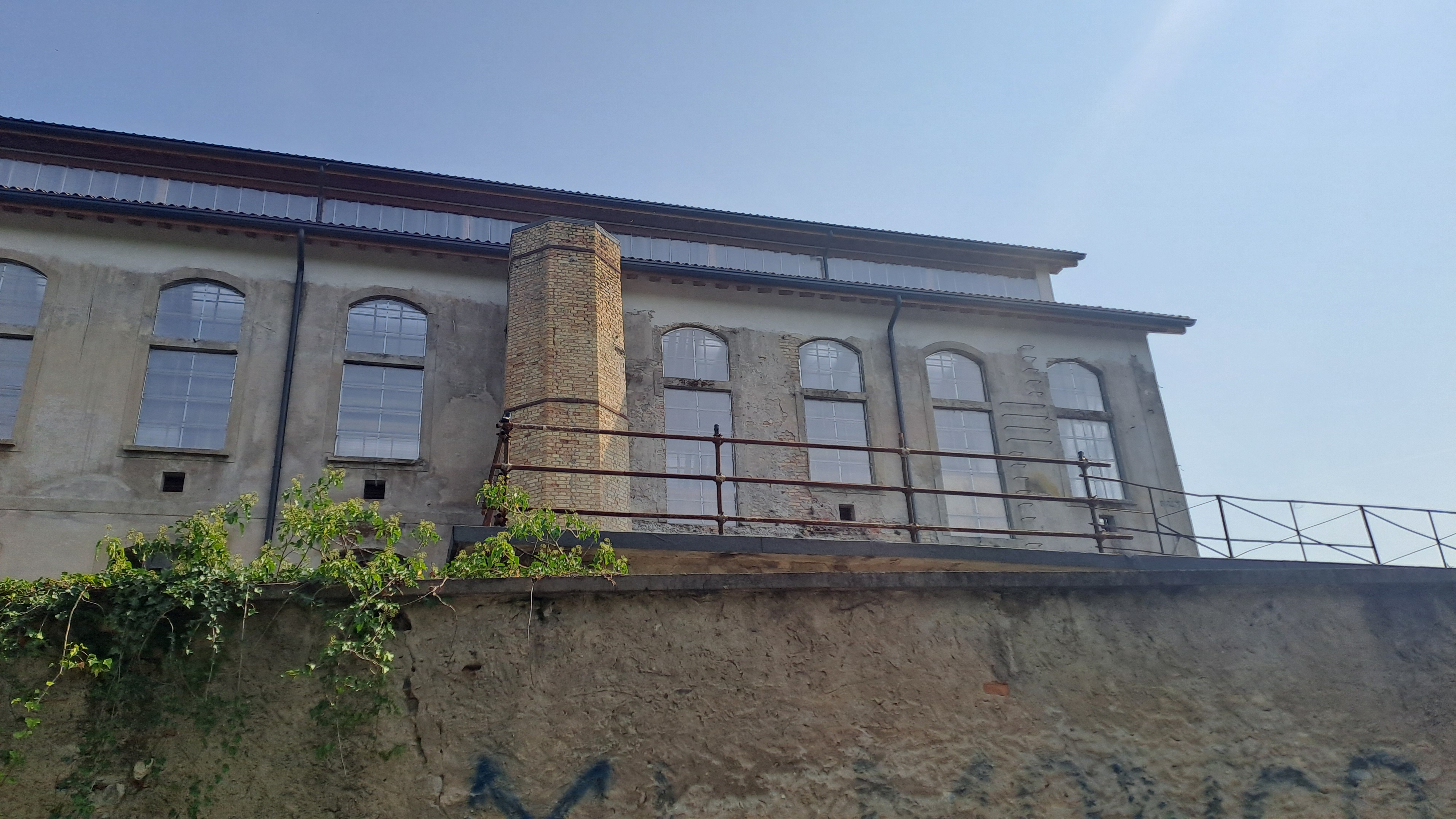 Altro particolare della facciata. Nel 1921, dopo il rovinoso incendio, fu ricostruita dai fratelli Banfi e proseguì l'attività fino agli anni 50 del secolo scorso.