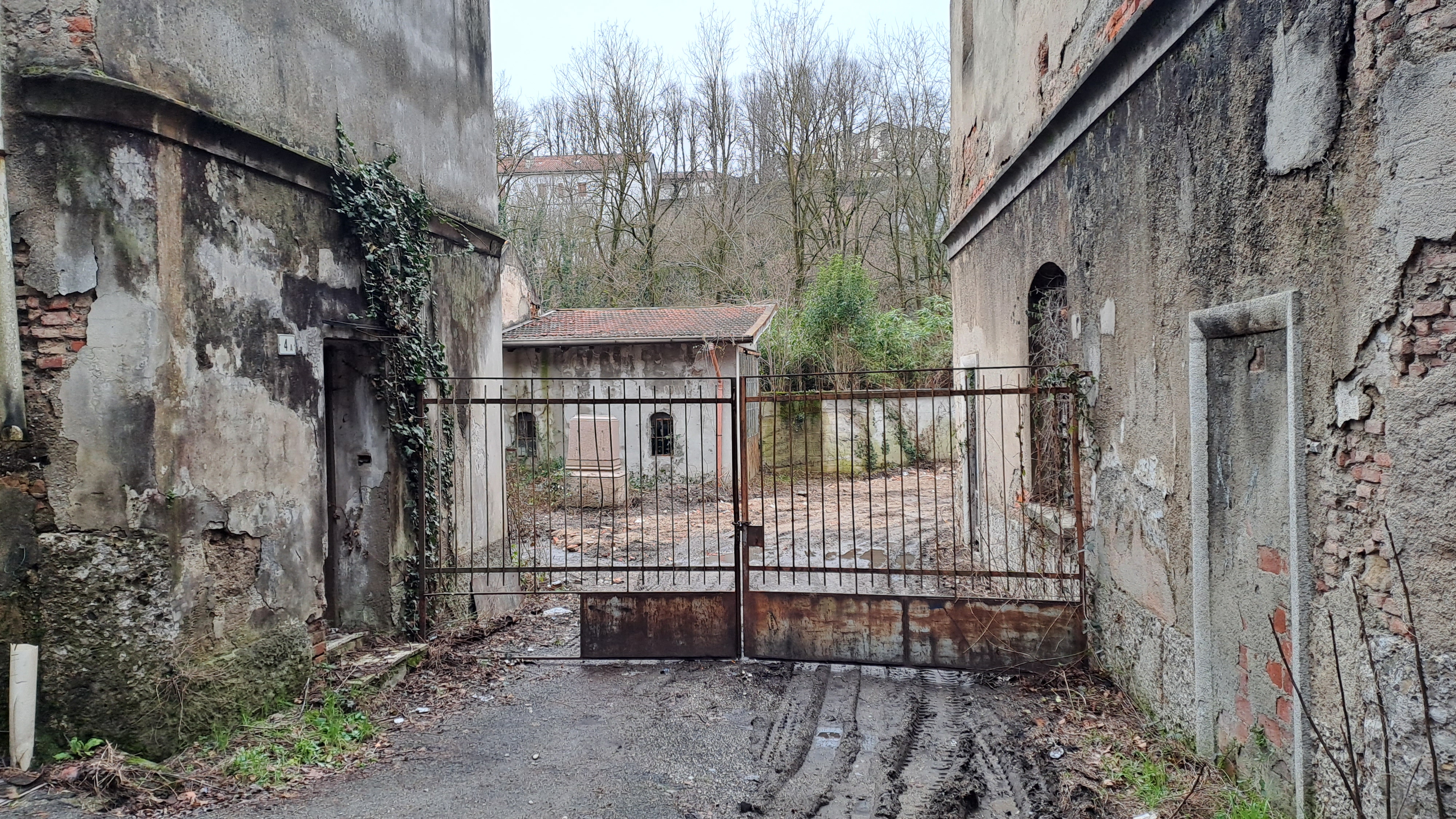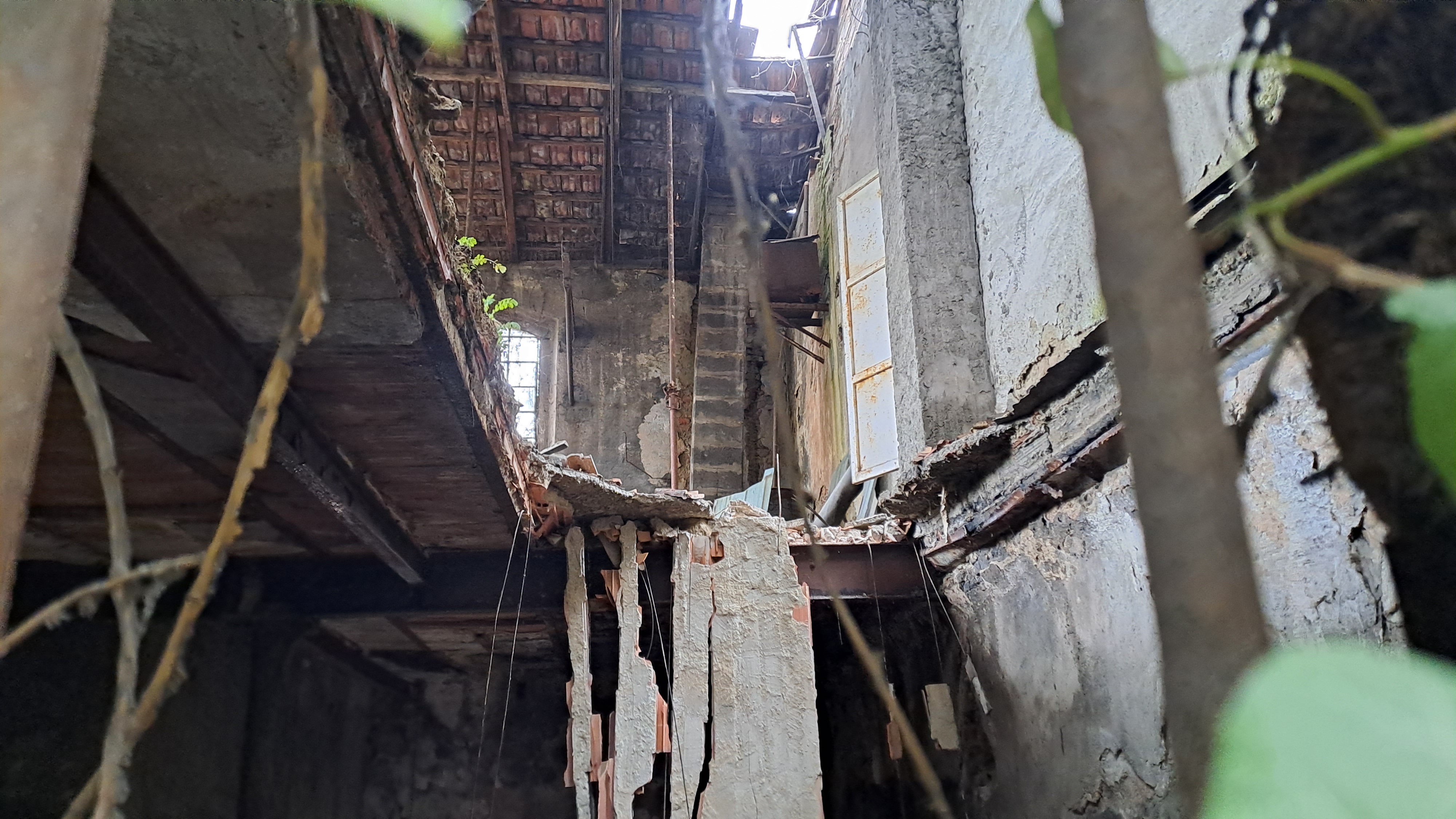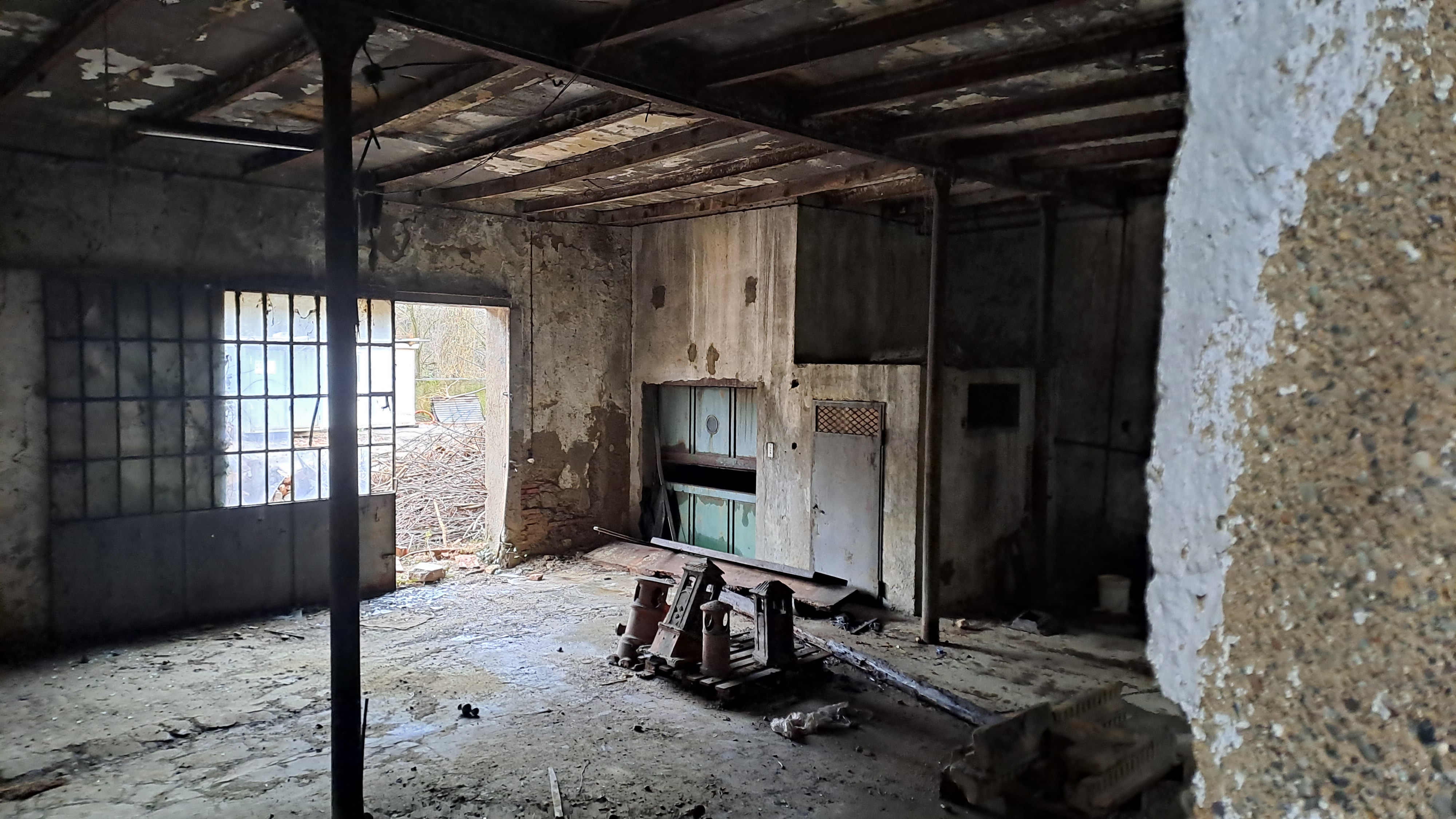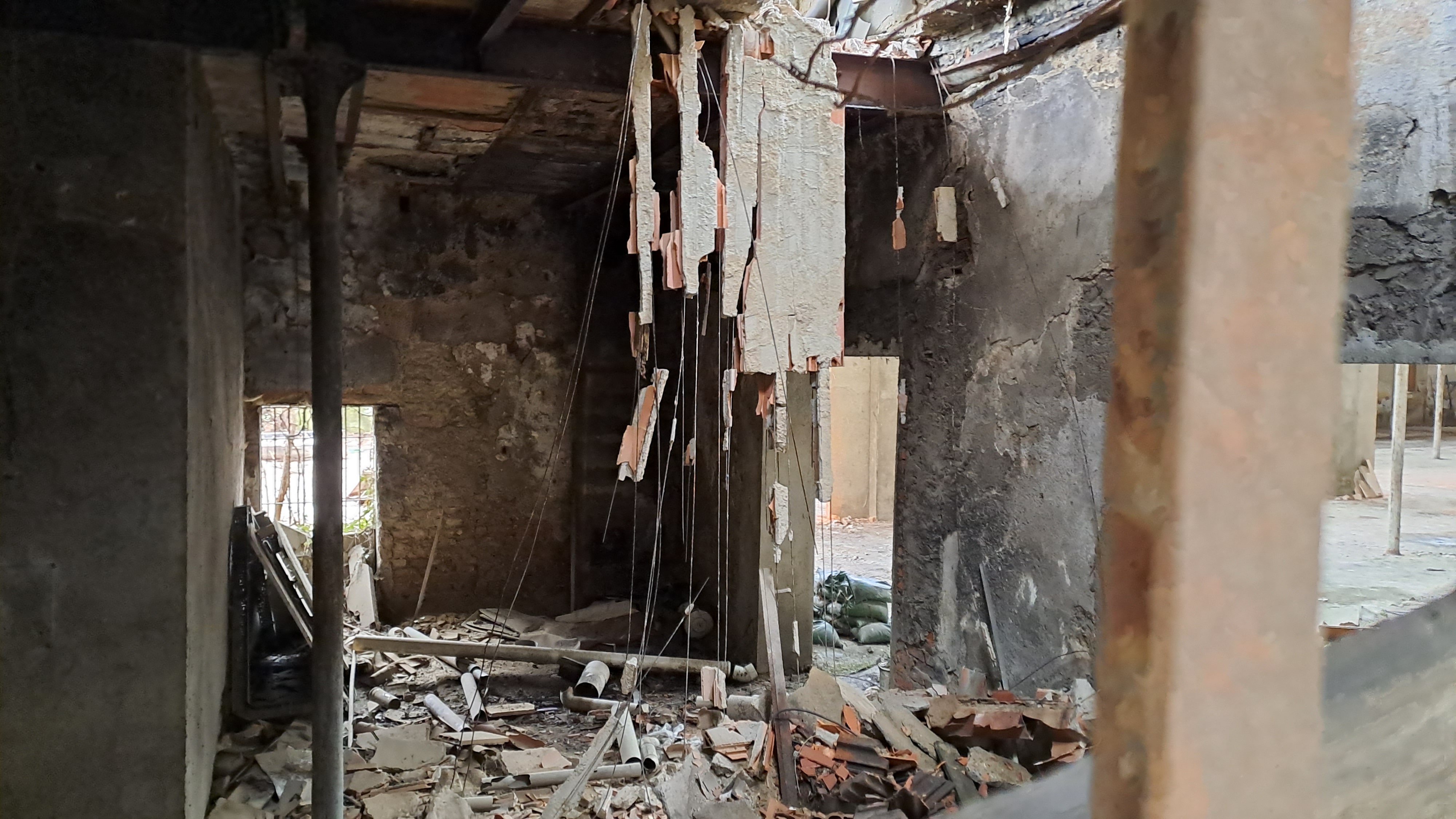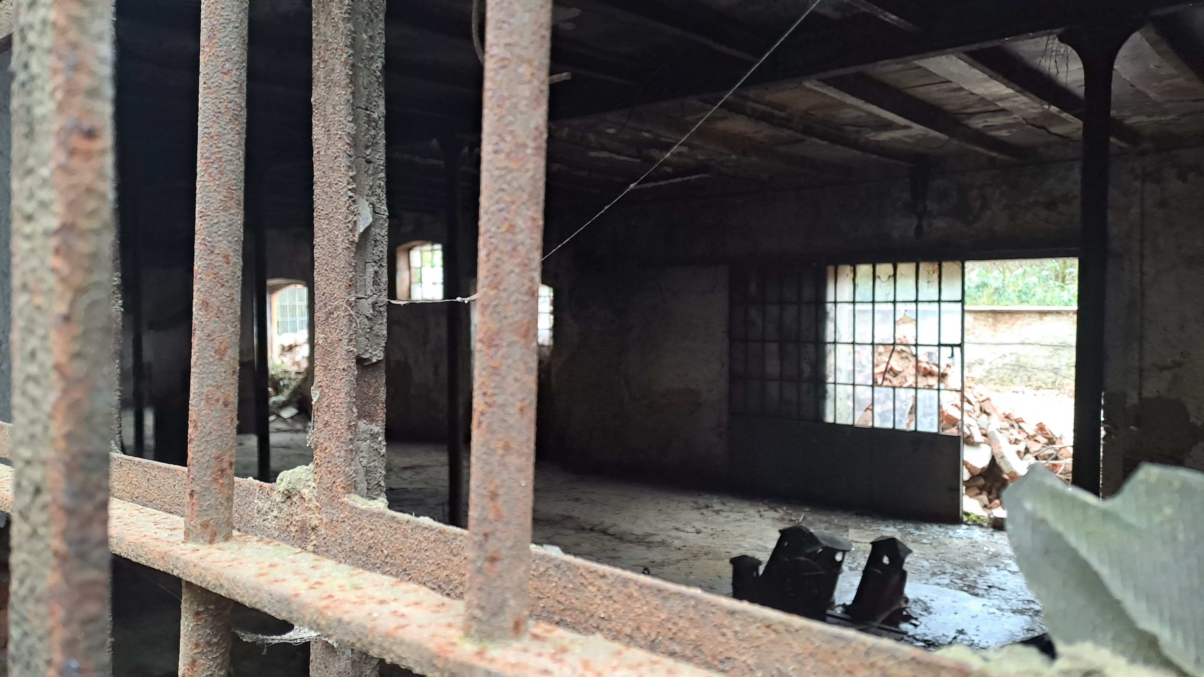 Foto scattate dal'esterno (finestre prive di vetri ma chiuse con griglie di ferro arruginite).