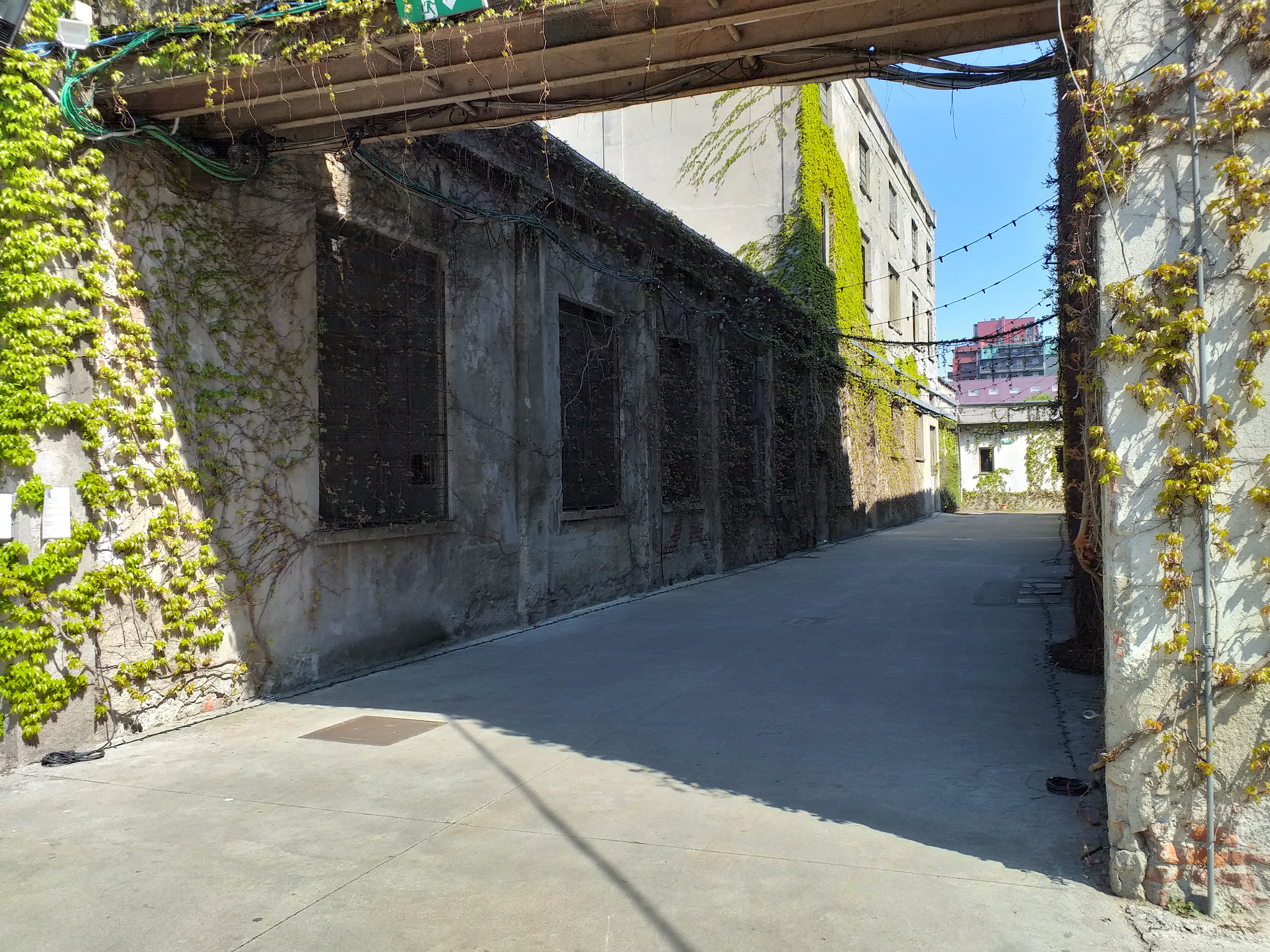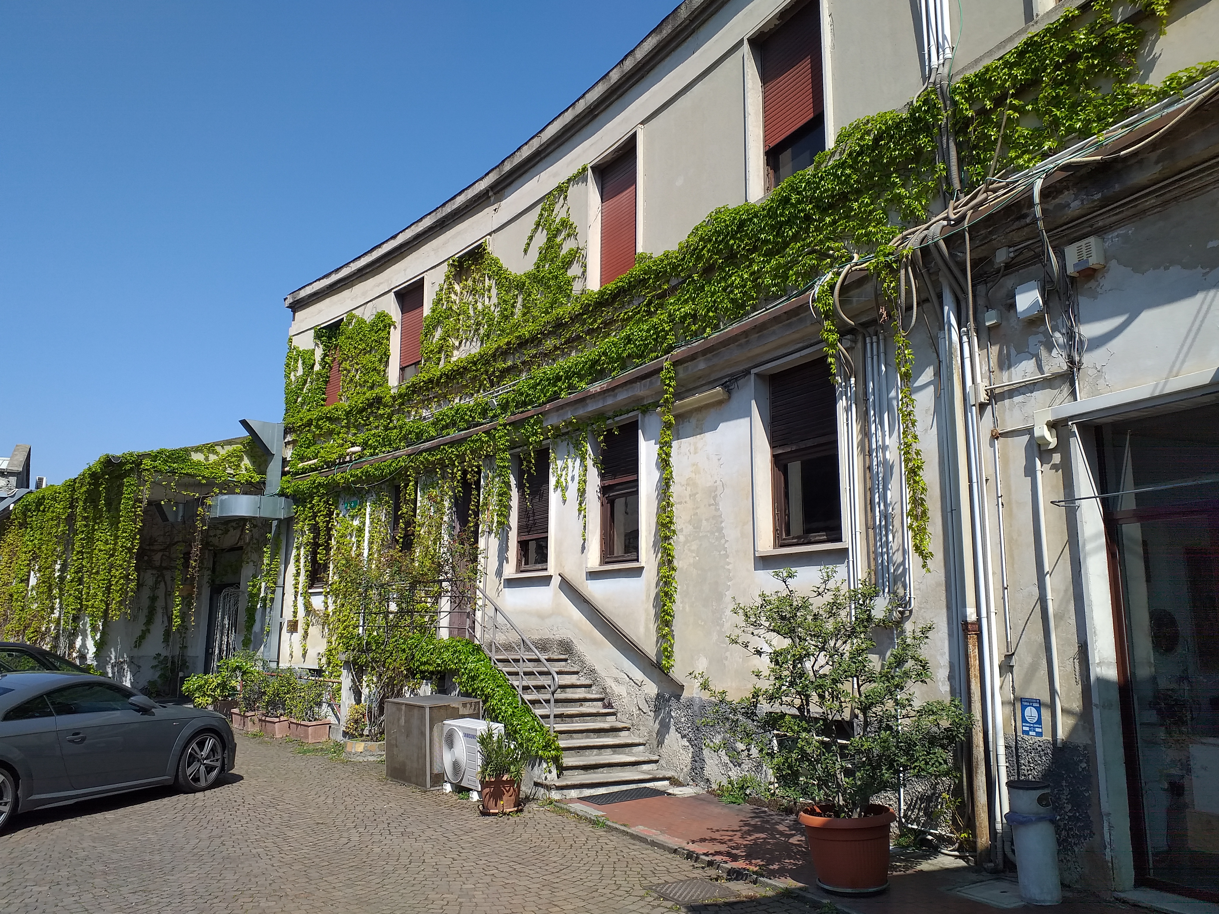 Dall'ingresso dello stabilimento si vede la zona probabilmente relativa al magazzino e carico/scarico merci.