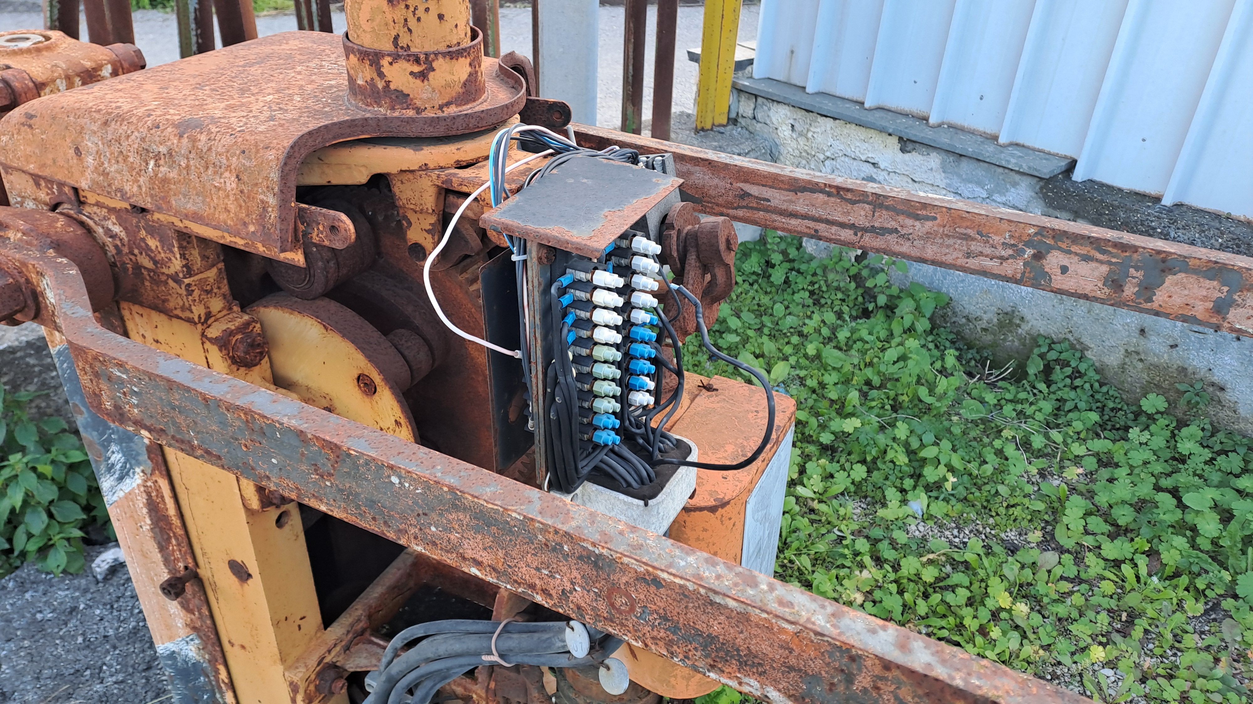 Torretta motorizzata per movimentazione sbarra del passaggio a livello con dettagli fili.